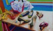 Holde Klis befasst sich momentan mit dem Malen von Stoffen in Öl auf Leinwand. Es sind spannende Ausschnitte, die sie dabei wählt: Kissen gestapelt, Stoffballen, die lagern, oder Stoffe, die als Ausschnitte von Sonnenschirmen auf die Leinwand gebannt sind. Das Spannende: Klis malt Stoffe in realistischer Manier, fast zum Anfassen schön. Exact der jeweilige Faltenwurf, genial gekonnt gemalt. Aber auch Bilder wie "Lora rennt", ein Hund vor buntem Hintergrund, überraschen den Betrachter in Ihrer Farbigkeit, Komposition und Bewegung